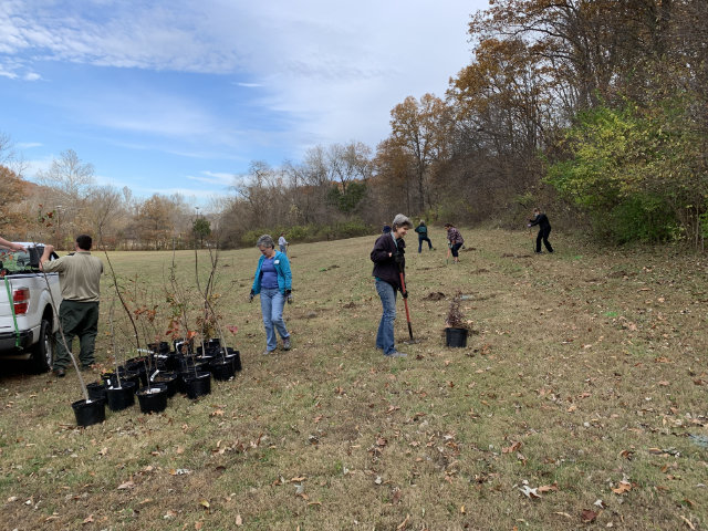 The Main Street Garden is located at 524 S. Main Street in St. Charles and is a 4,000 sq. ft. lot that was transformed into a native garden in 2018. It is now maintained through a partnership with the St. Charles County Master Gardeners and the Confluence members. In 2022, the garden was awarded a “Nature Garden of Excellence” through the Missouri Prairie Foundation’s Grow Native Program. Each fall, the members create “Mother Nature” from grasses, spent blooms and various additional treasures.